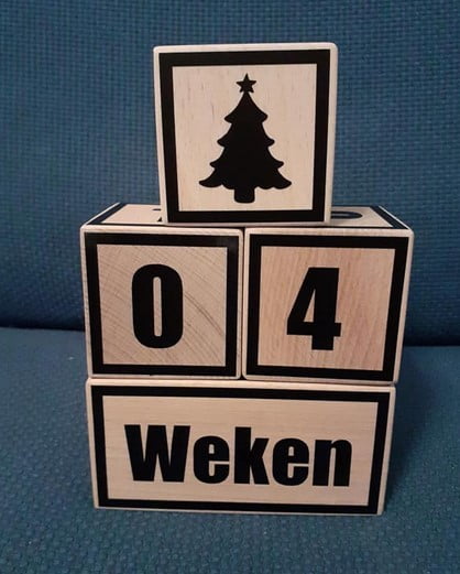 – een blokje met een mijter, een kerstboom, een cadeautje en een smiley
