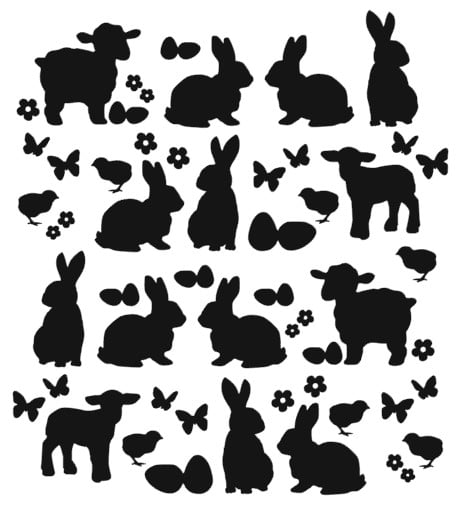 Een vrolijk stickervel vol met paas figuurtjes. Bloemetjes, hazen, eieren en nog veel meer. Genoeg leuke figuurtjes om van alles mee te versieren! Haal de Pasen in huis met deze stickertjes. Het haasje rechts boven is ca 4cm hoog.