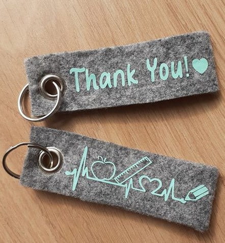Hoe leuk is deze dubbele sleutelhanger met aan de ene zijde THANK YOU en op de andere zijde een hartslag met potlood e.d. Een super leuk cadeau om te geven aan een Super Meester of Toffe Juf!